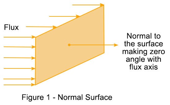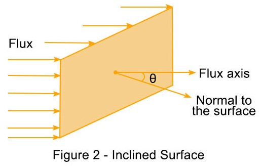 案例II – 考虑一个倾斜于光通量的表面,其法线与光通量轴成角度(θ),如下图所示。