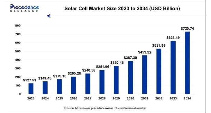 Precedence Research新报告揭示全球太阳能电池市场到2034年将达到7307.4亿美元